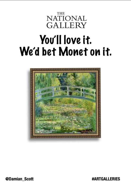 An old joke. But there's no reason those can't make great new ads. Another idea to promote specific art exhibitions.